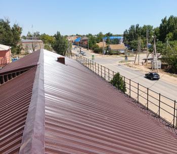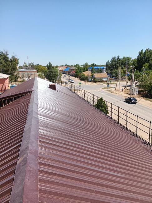 1. Ремонт скатной крыши. Произведена частичная замена сильно изношенной стропильной системы и усилена существующая. Заменена полностью обрешетка с устройством контробрешетки и пароизоляционной пленки. Заменено кровельное покрытие на профилированные листы НС-35 с полимерной окраской. Произведен ремонт вентканалов. Установлено леерное ограждение и снегозадержатели. Организованная водосточная система.