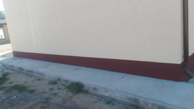 3. Ремонт фундамента. Выполнены работы по устройству наружной гидроизоляции фундамента. Произведена укладка бетонной отмостки по щебенчатой поверхности с армированием и установкой бортовых камней.