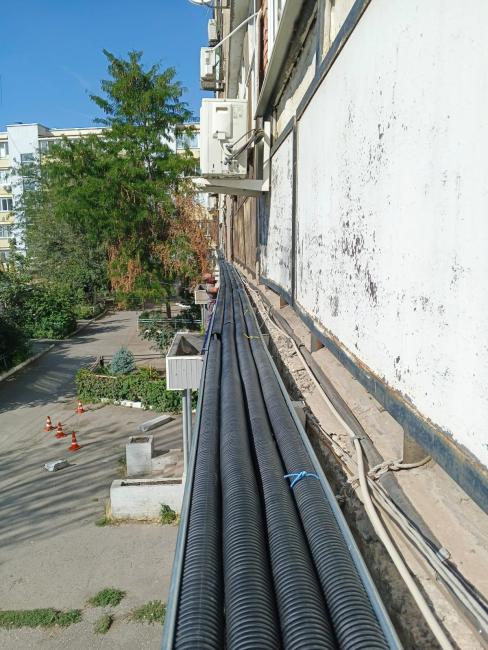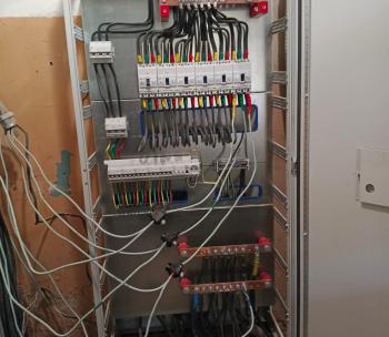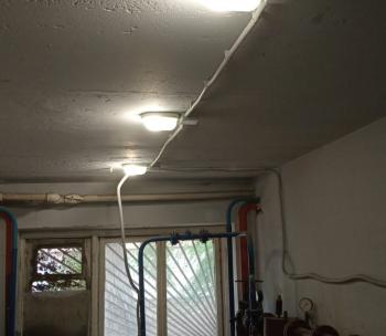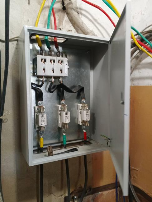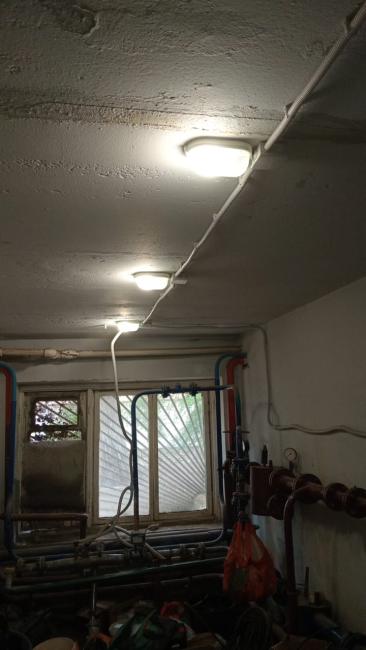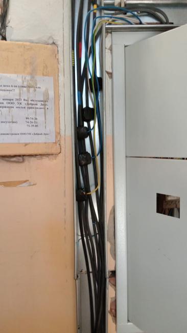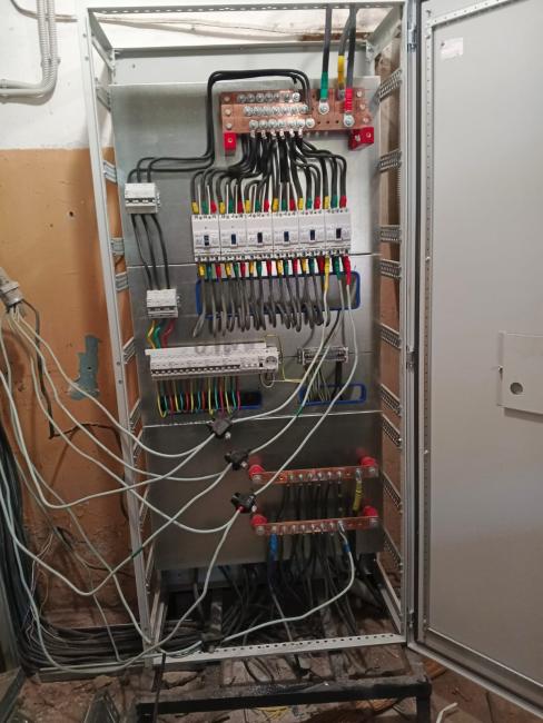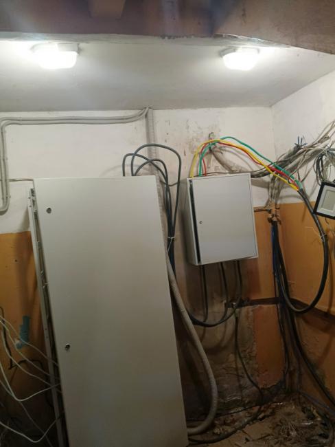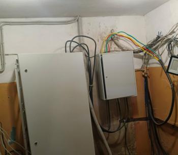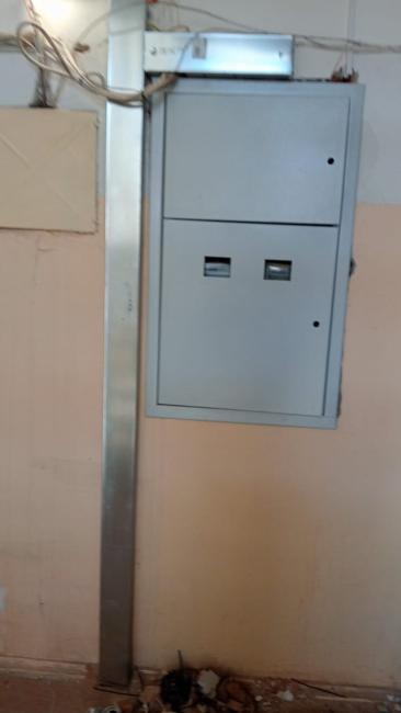 Ремонт системы электроснабжения. Выполнены работы по замене ВРУ и этажных щитов. Произведена полная замена магистральных кабелей. Установлено освещение на цокольном этаже, в подъездах и входных групп на улице. На освещение в подъездах установлены светильники с заменяемыми лампами и датчики движения на этажных и межэтажных лестничных площадках. Прокладка магистральных кабелей произведена по фасаду дома в металлических коробах на кронштейнах. Прокладка кабелей в подъездах осуществлена в металлических коробах, закрепленных к стенам. Устроено заземление.