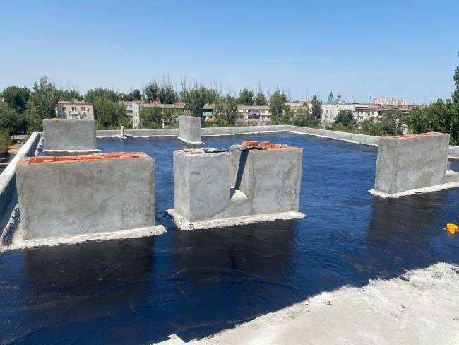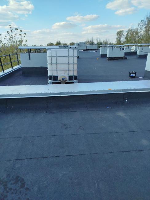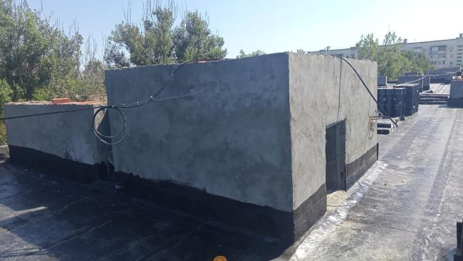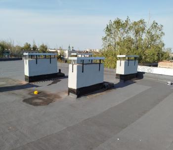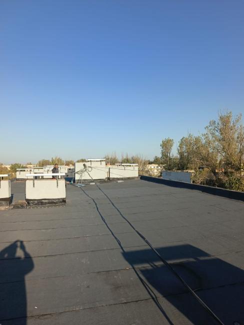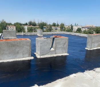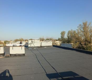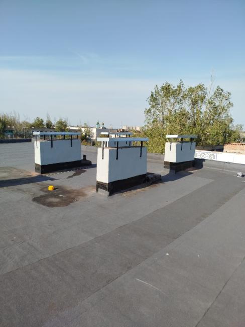 Ремонт плоской кровли. Выполнены работы по демонтажу существующего покрытия и устройству нового из современных наплавляемых материалов по новой выравнивающей стяжке. Выполнен ремонт вентканалов и будколазов, заменены двери и люки выхода на кровлю, установлены ограждающие конструкции, устроена водосточная система.